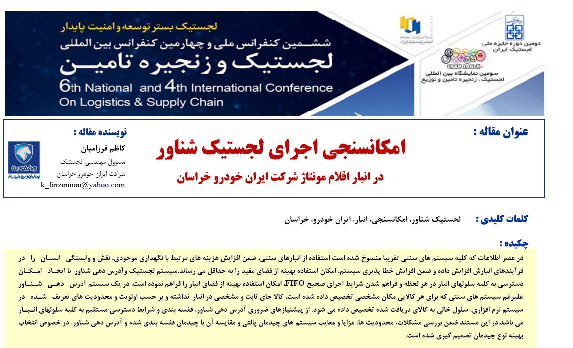 مقاله : امکانسنجی اجرای لجستیک شناور در شرکت خودرو سازی